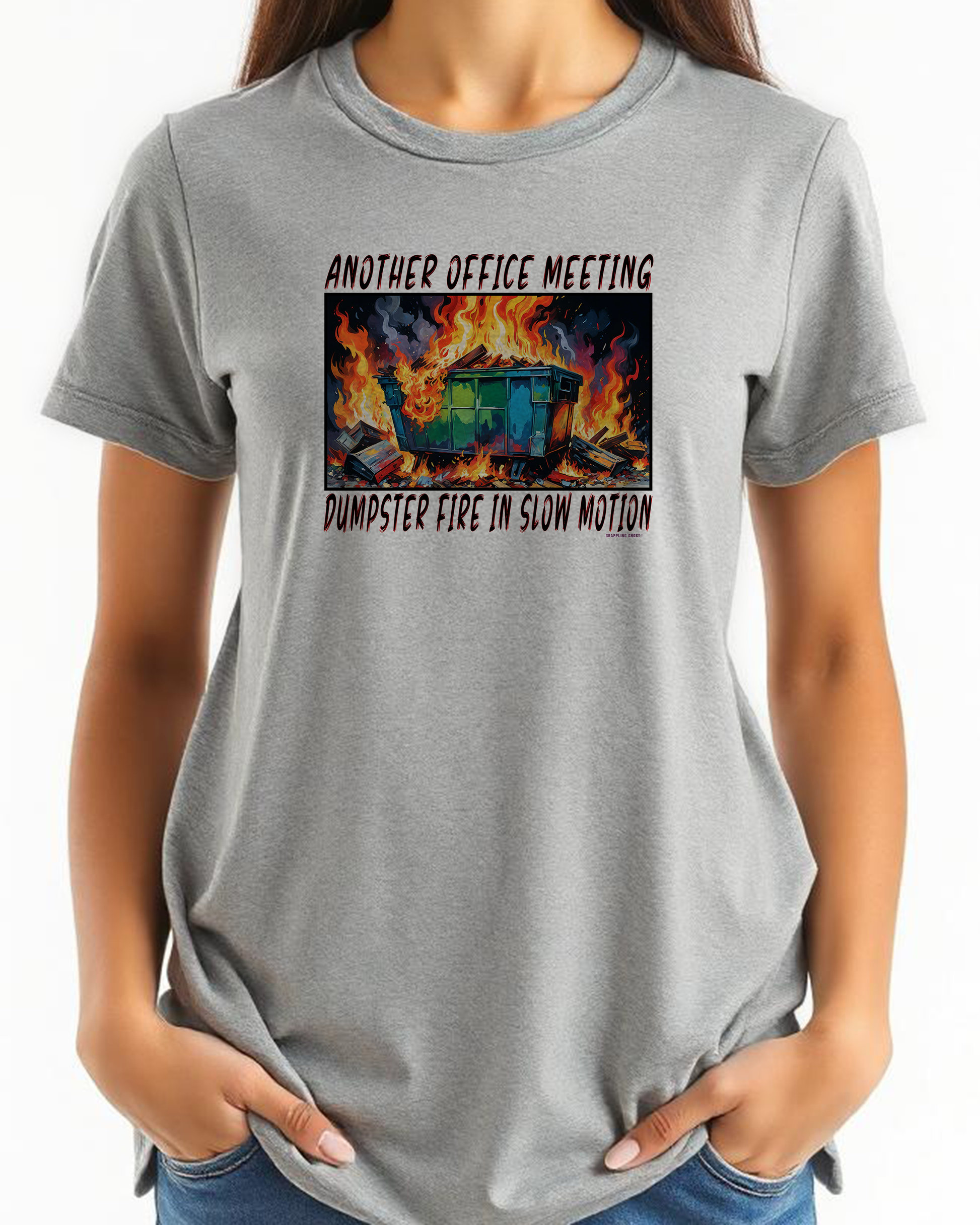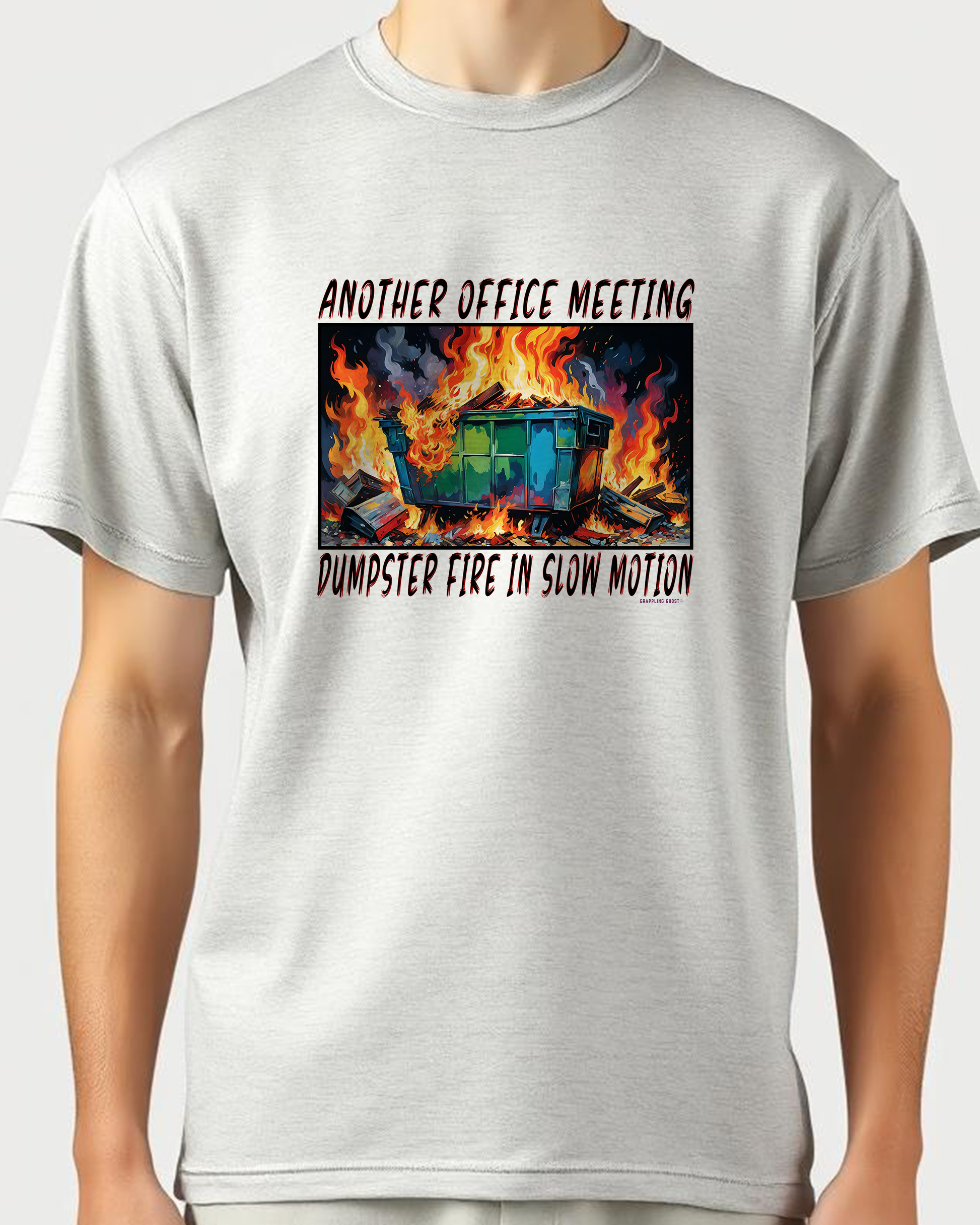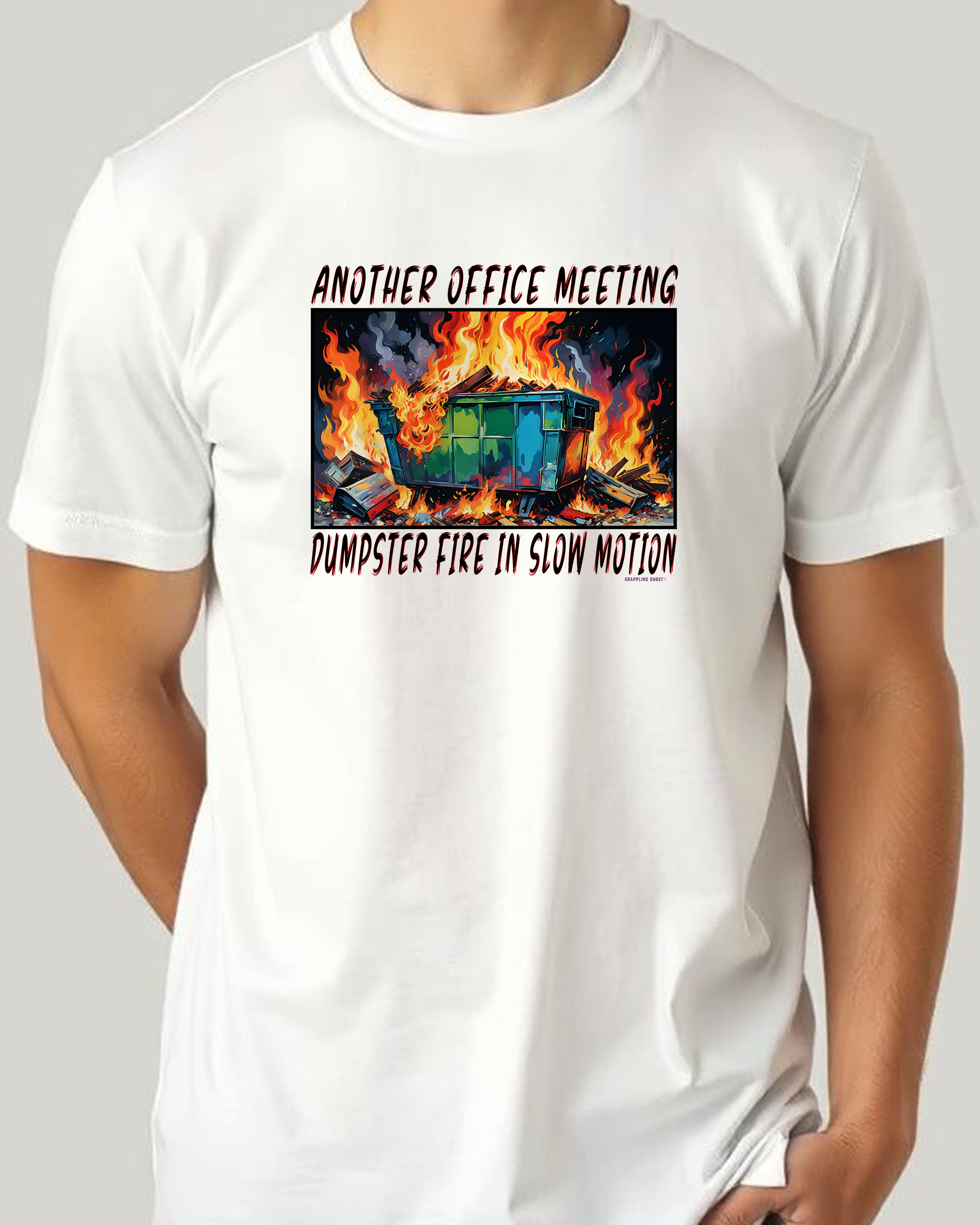 Introducing Dumpster Fire - a fresh twist on the classic "dumpster fire" concept! Perfect for office meetings and events, this fun shirt captures the feeling of everything going wrong in slow motion. Let everyone know your thoughts on those chaotic, never-ending meetings.