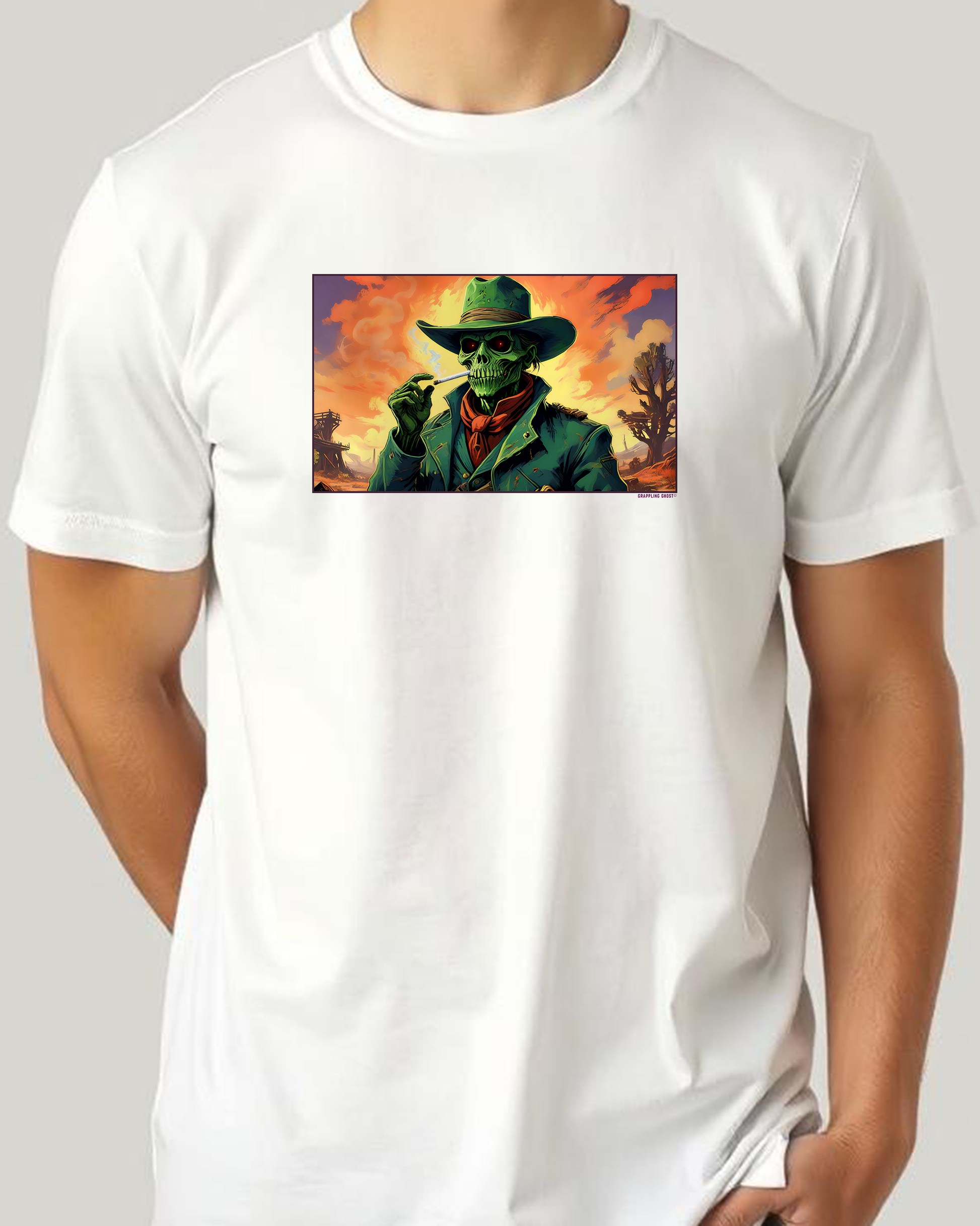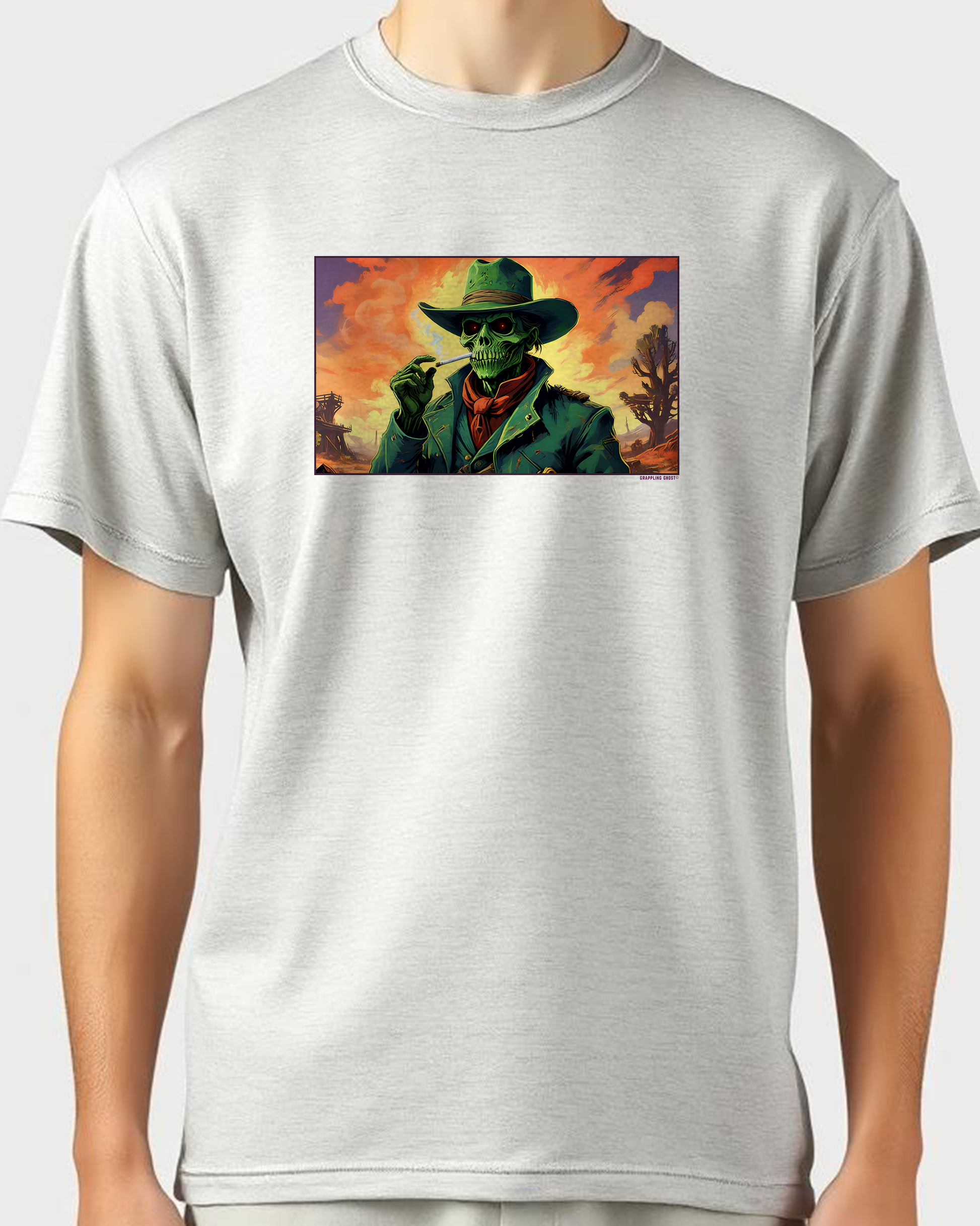 Introducing Green Ghoul Lit, a unique shirt featuring a ghoul smoking a joint in the wasteland. Made for fans of post-apocalyptic worlds, this shirt ponders on the mystery of a ghoul's longevity and his love for weed. Stand out with this bold and thought-provoking design.