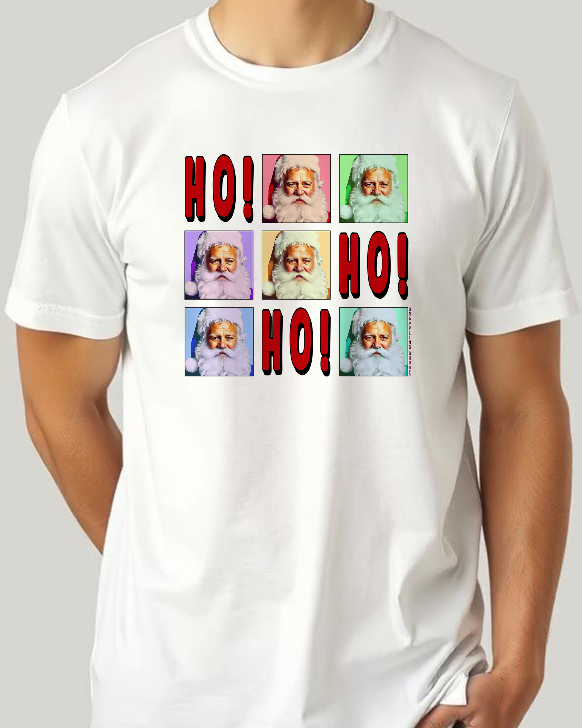 Get into the holiday spirit with Ho Ho Ho Santa shirt! This shirt puts a unique twist on the traditional Santa Claus design with fun and vibrant colors. Spread holiday cheer in style with this hip and playful Christmas wardrobe addition. Merry Christmas, indeed!