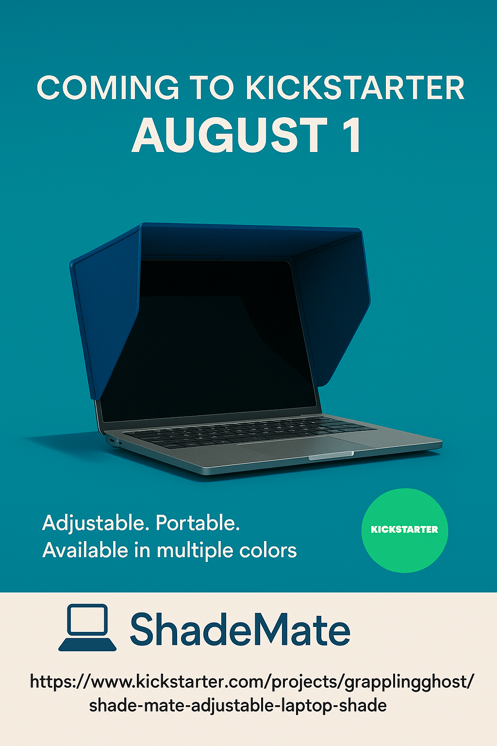 Coming to KICKSTARTER August 1: Shade Mate: The Adjustable, Customizable Laptop Shade - Patent Pending